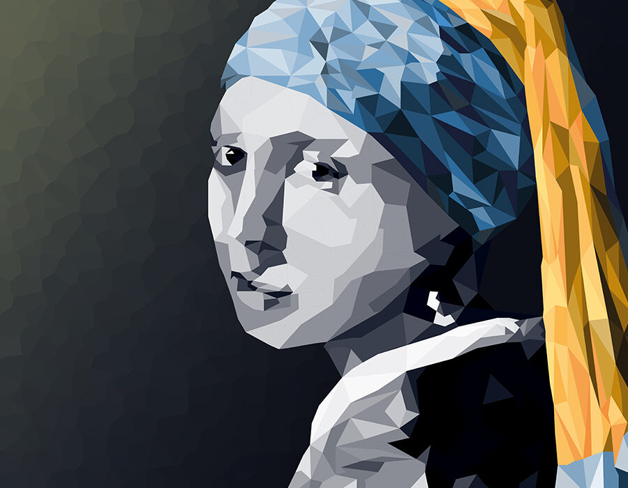 “The girl with the pearl earring, is my digital version of one of the greatest painting of Vermeer. I love the color combination with the dark structure background I created and is available as a print on Plexiglass. beautiful results and wall decor.”